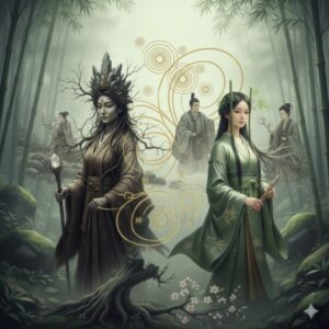 皇孫、困りて大山祇神に謂りて曰はく、「吾、次が女子を見す。以て妻とせむと欲ふ」とのたまふ。ここに、大山祇神、乃ち二の女をして、百机飲食を持たしめて奉進る。