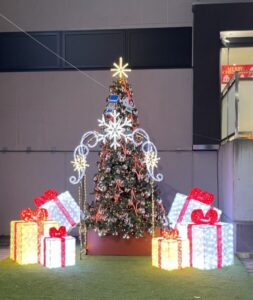 駅前のクリスマスツリーに子どもが2人走ってきた。